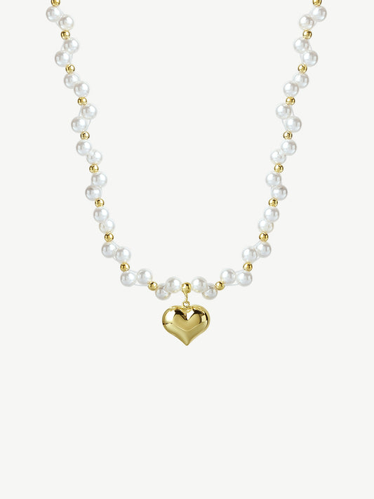 The metal outlines the outline of a heart, wrapped around a pearl, symbolizing the “hidden...