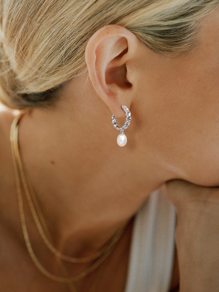 Organic pearl earrings paired with sculptural fine mini hoops, These mini hoop earrings make a 'barely there' addition to your earring collection. The size of this earring is best for those with smaller lobes, or perfect for second or third piercings.