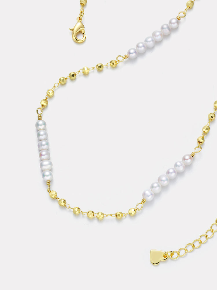 Inspired by natural forms. Bringing wisdom and knowledge, freshwater pearls form this choker necklace, contrasted and offset with small gold(silver)beads for a distinctive finish. The ultimate way to add texture to your layers.