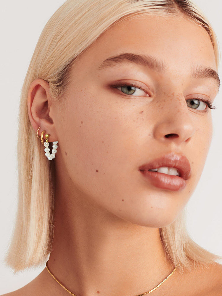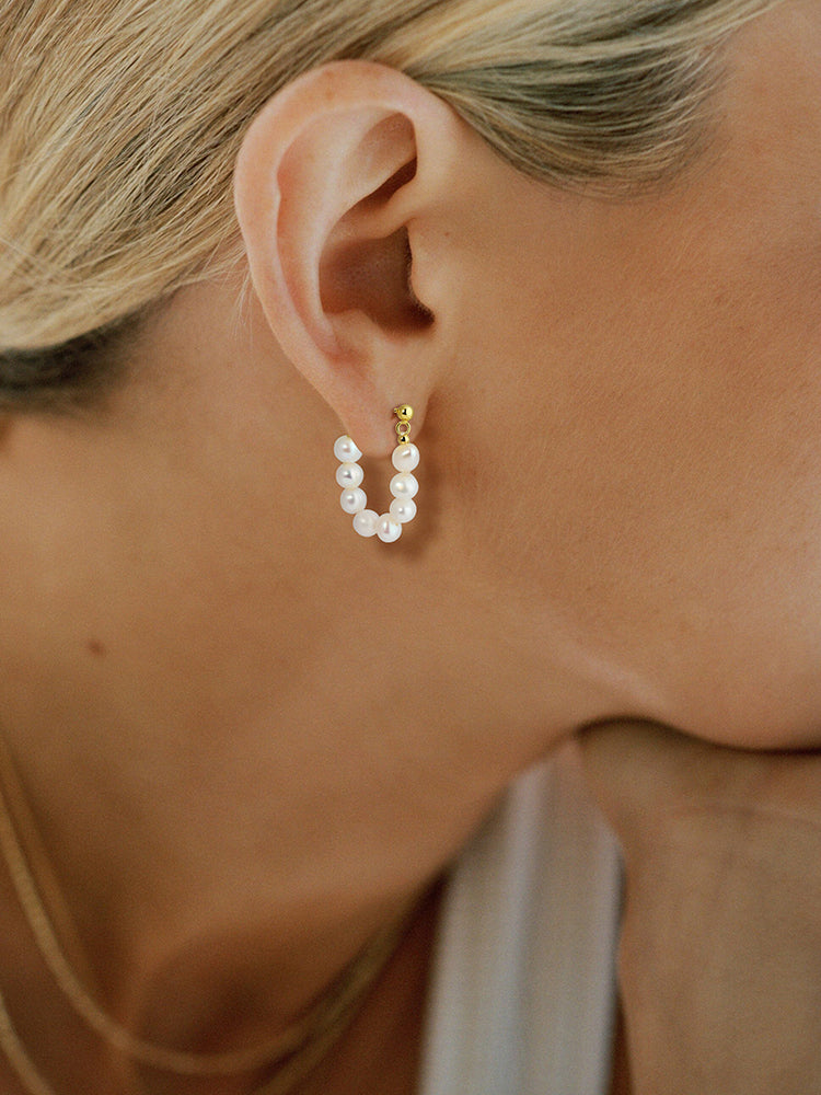 Elegant pearl strand earrings, featuring multiple lustrous pearls delicately threaded together. A timeless and graceful design that adds subtle sophistication to any look.