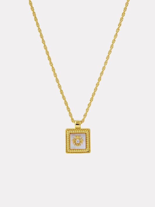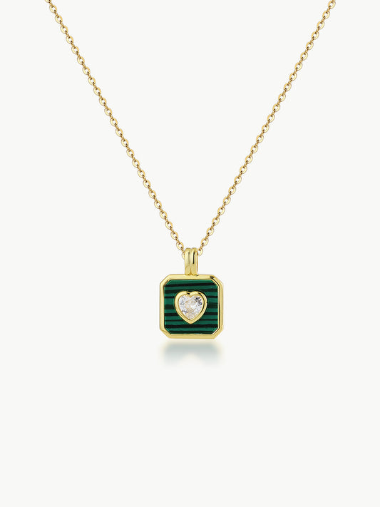 A semi-precious addition to your layers. Paired with a delicate chain, the square malachite pendant,...