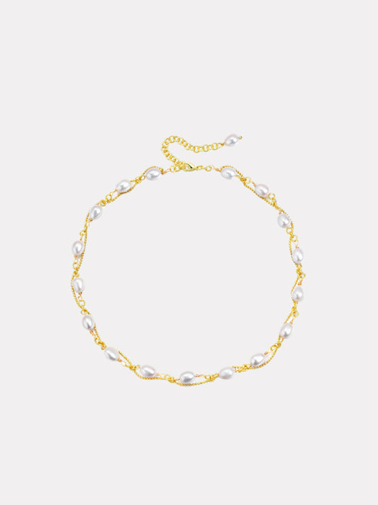 Pearls, reimagined. A simple everyday pearl necklace, featuring a delicate gold twisted chain paired with...