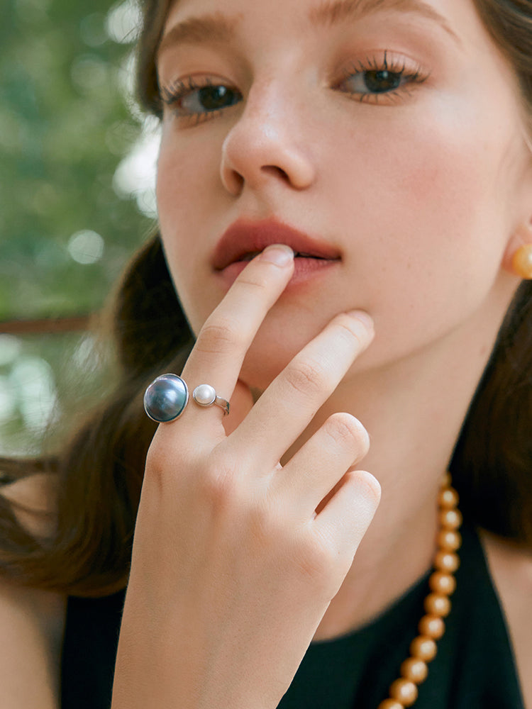 Dual Pearl Contrast Ring MOSSETTA Jewelry