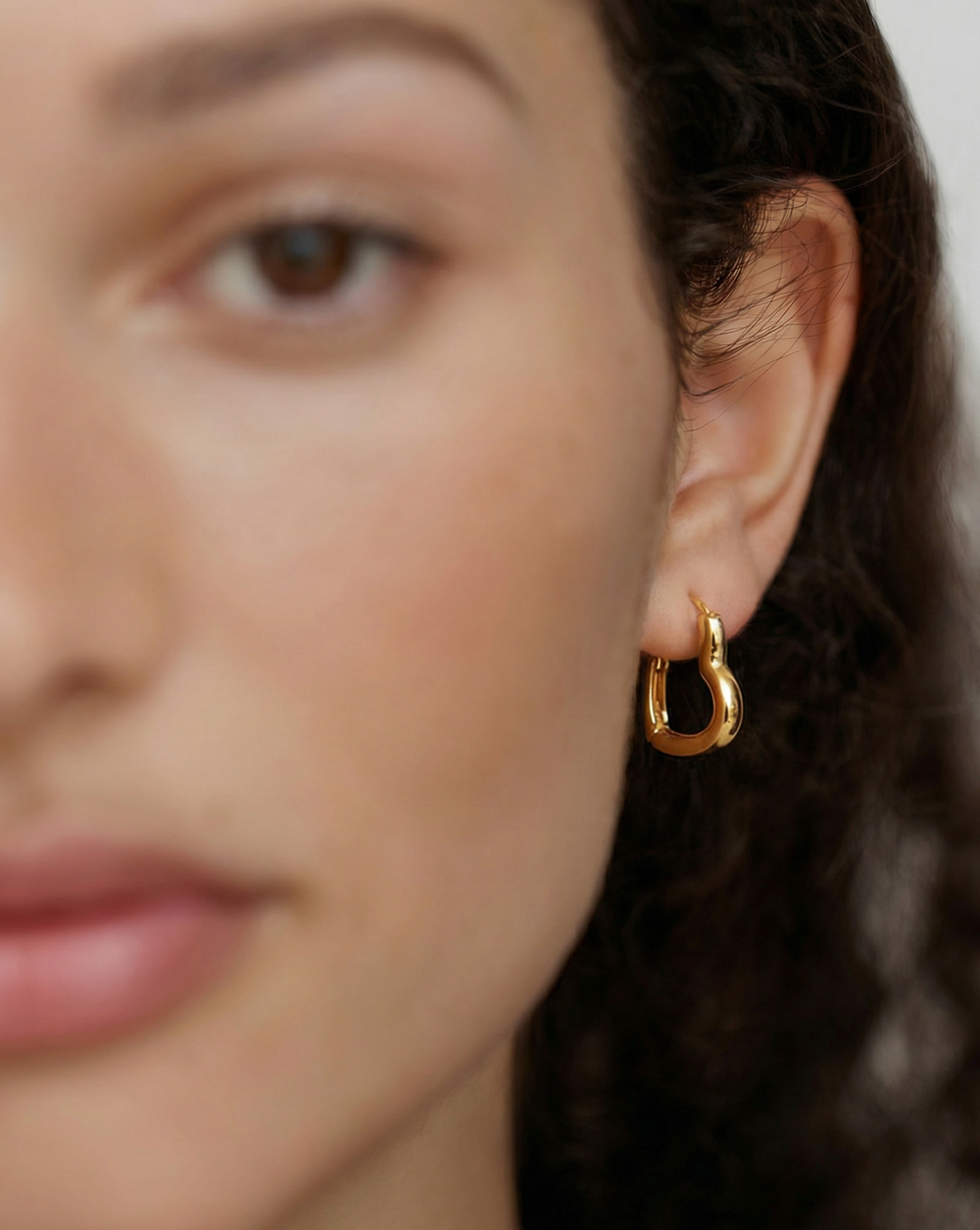 Playful heart-shaped huggies with soft, voluminous curves and a mirror-like high-shine finish for sweet everyday romance.These chunky hearts hug close to the lobe, perfect solo for subtle charm or layered with delicate studs.