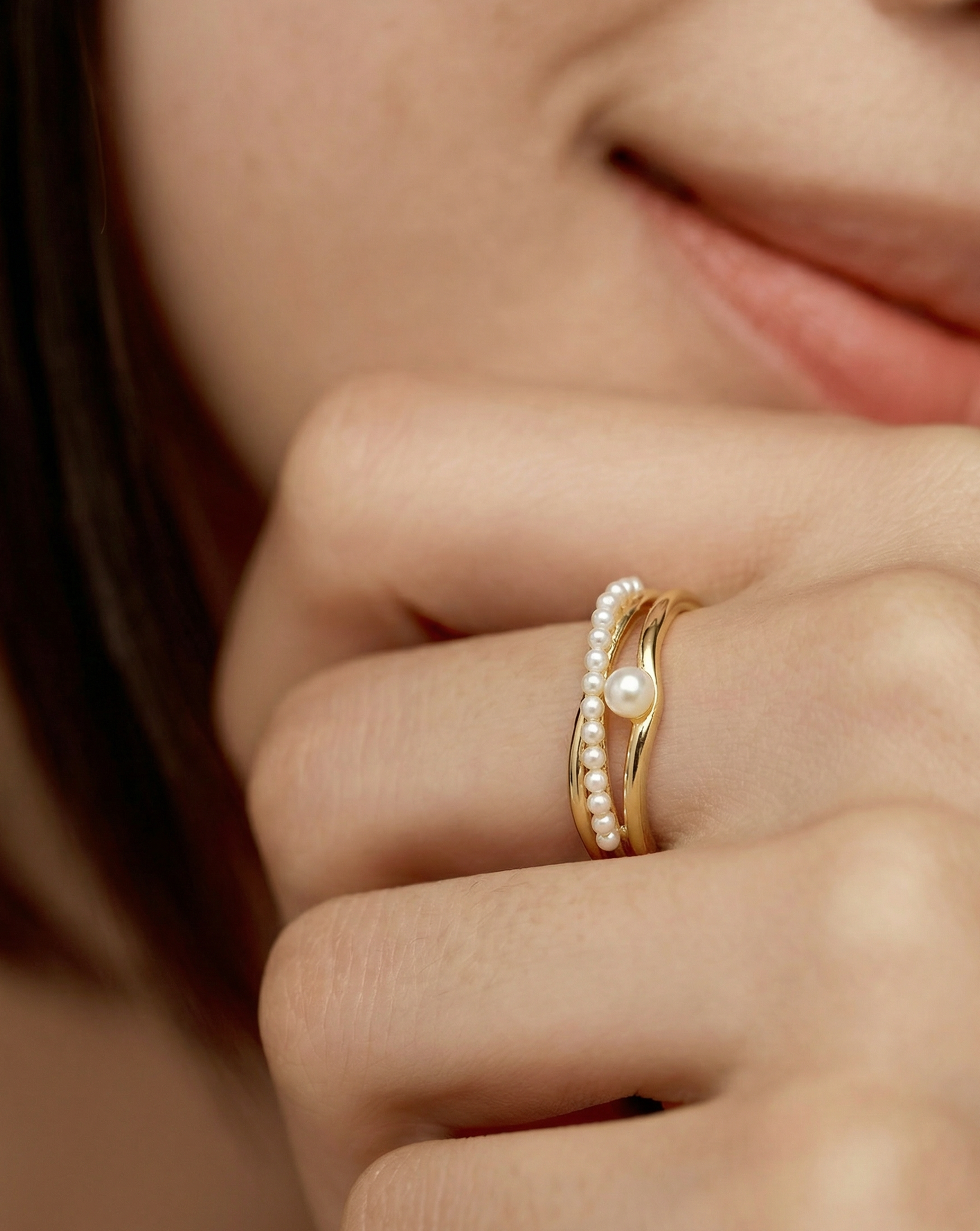 Inspired by the ocean’s treasures. We paired a golden organic wave with a line of shimmering pearls to create the ultimate instant stack. Adjustable and effortless, it brings a touch of coastal elegance to your everyday look.