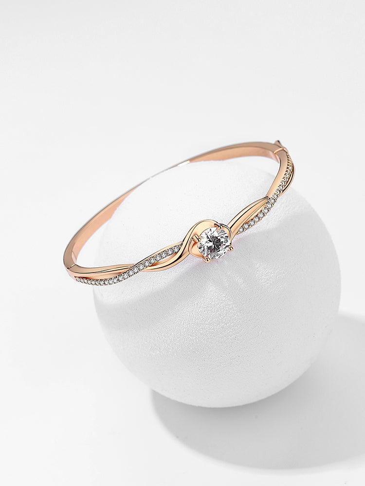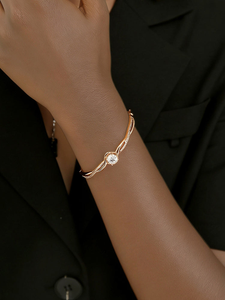 Twisted rose gold wraps around a glowing stone, lined with tiny sparkles—its gentle curve feels like a quiet promise of enduring charm.Light on the wrist, bright in the light; every movement carries a soft, romantic shimmer.