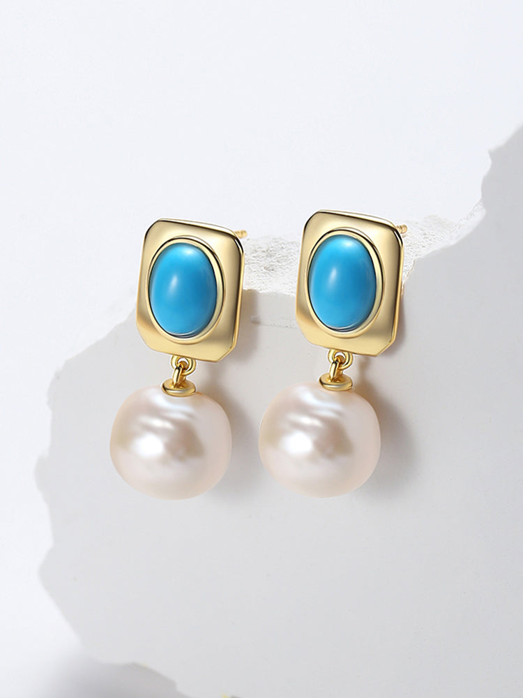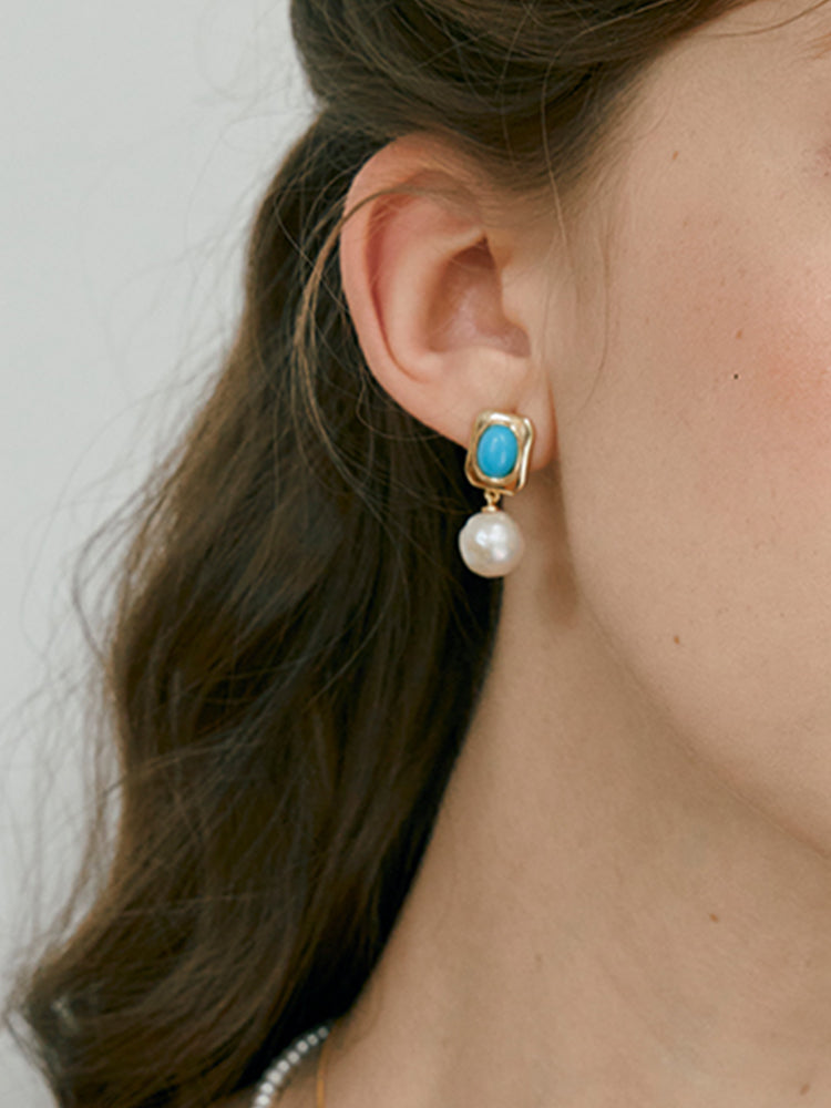 Turquoise Pearl Drop Earrings MOSSETTA Jewelry
